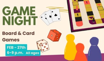 February 27th, 6-9 p.m. Come and join us for an evening of fun and games!